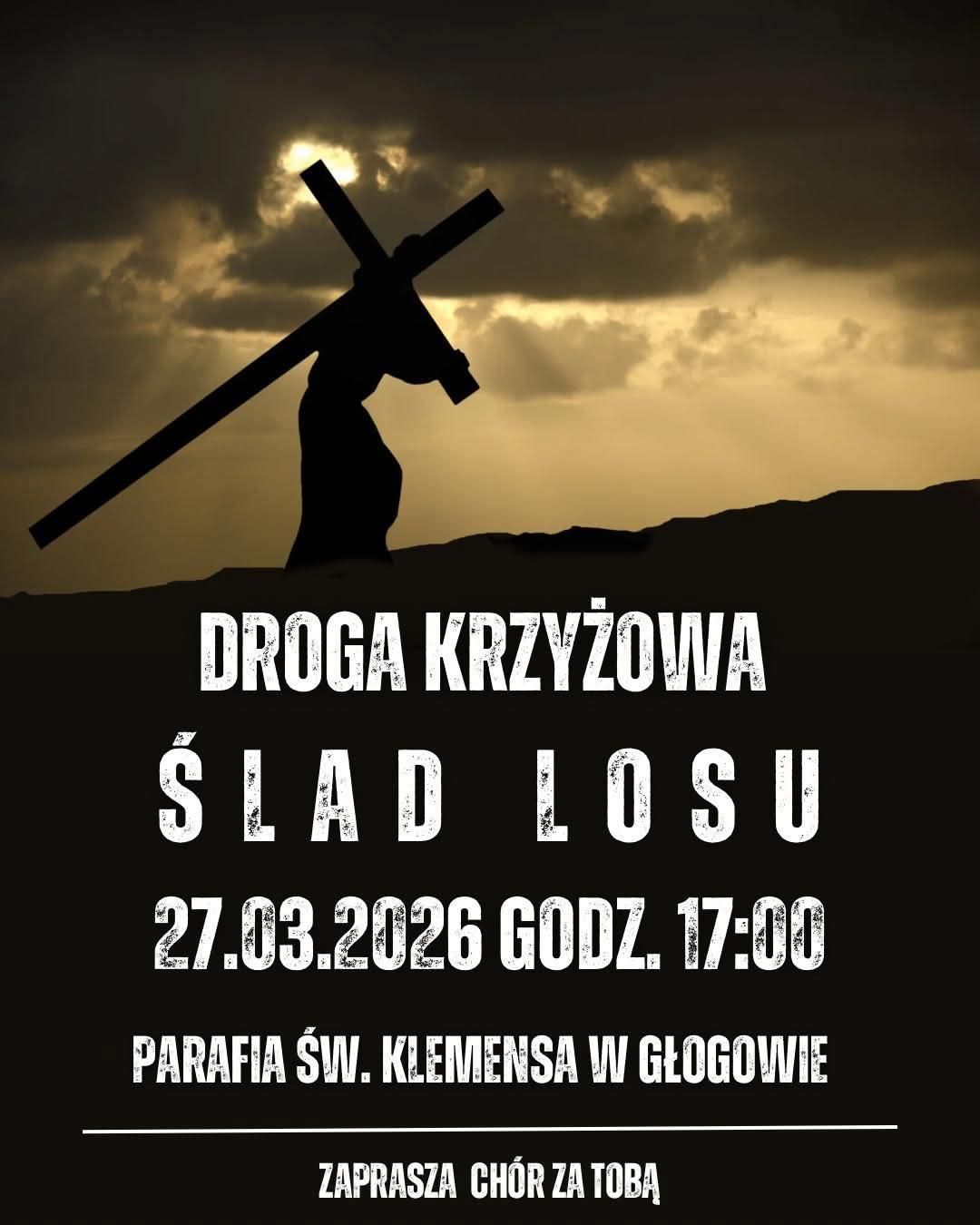 Zapraszamy na wyjątkową Drogę Krzyżową w piątek 27.03.2026 o godz. 17:00; będzie to piękna, śpiewana przez nasz chór “Za Tobą” – Droga Krzyżowa pt. “Ślad Losu” – stworzona przed 40 laty w seminarium redemptorystów w Tuchowie. Autorem słów jest o. Andrzej Wodka, muzyki – o. Wojciech Skroboszewski.