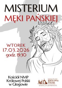 Zapraszamy na Misterium Męki Pańskiej przygotowane w Wielkim Poście przez parafię MB Królowej Polski –  to już tradycja. Tegoroczne Misterium zostanie wykonane we wtorek, 17 marca o godz. 19:30 w kościele na os.Kopernika.
